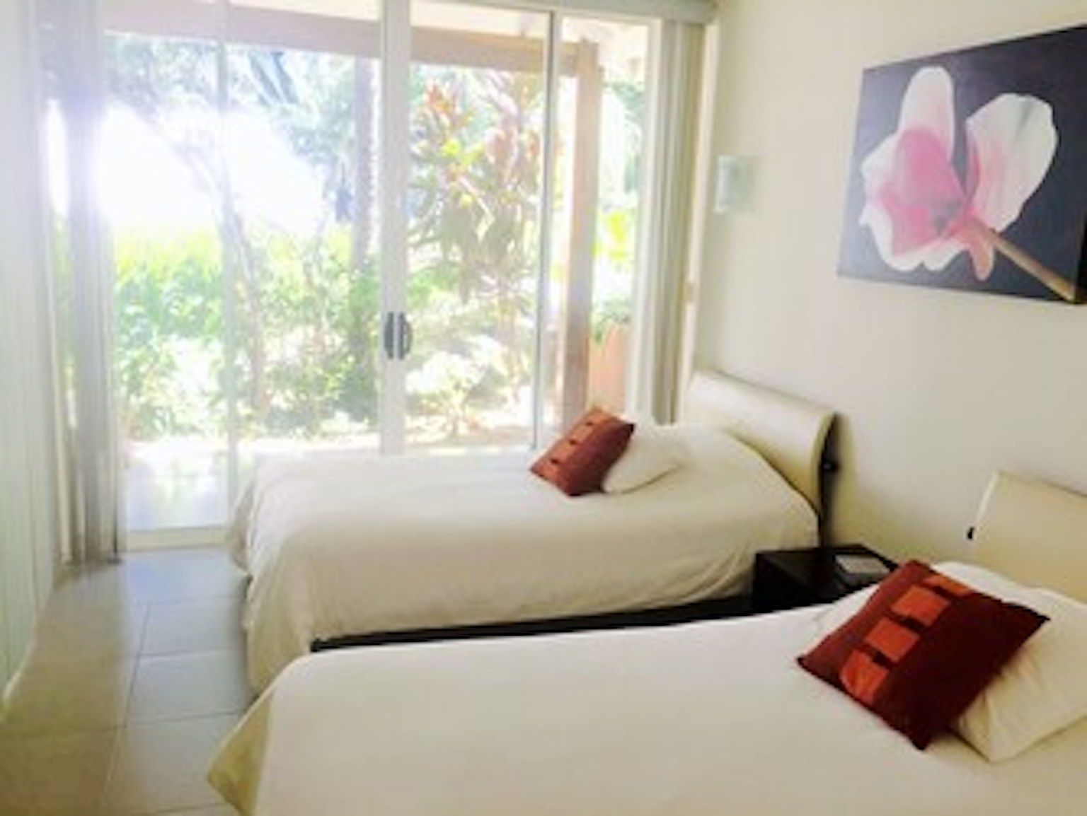Beautiful garden-side villa. King bed in first bedroom, 2 twin beds in second bedroom (can be dressed as a king bed upon request.)