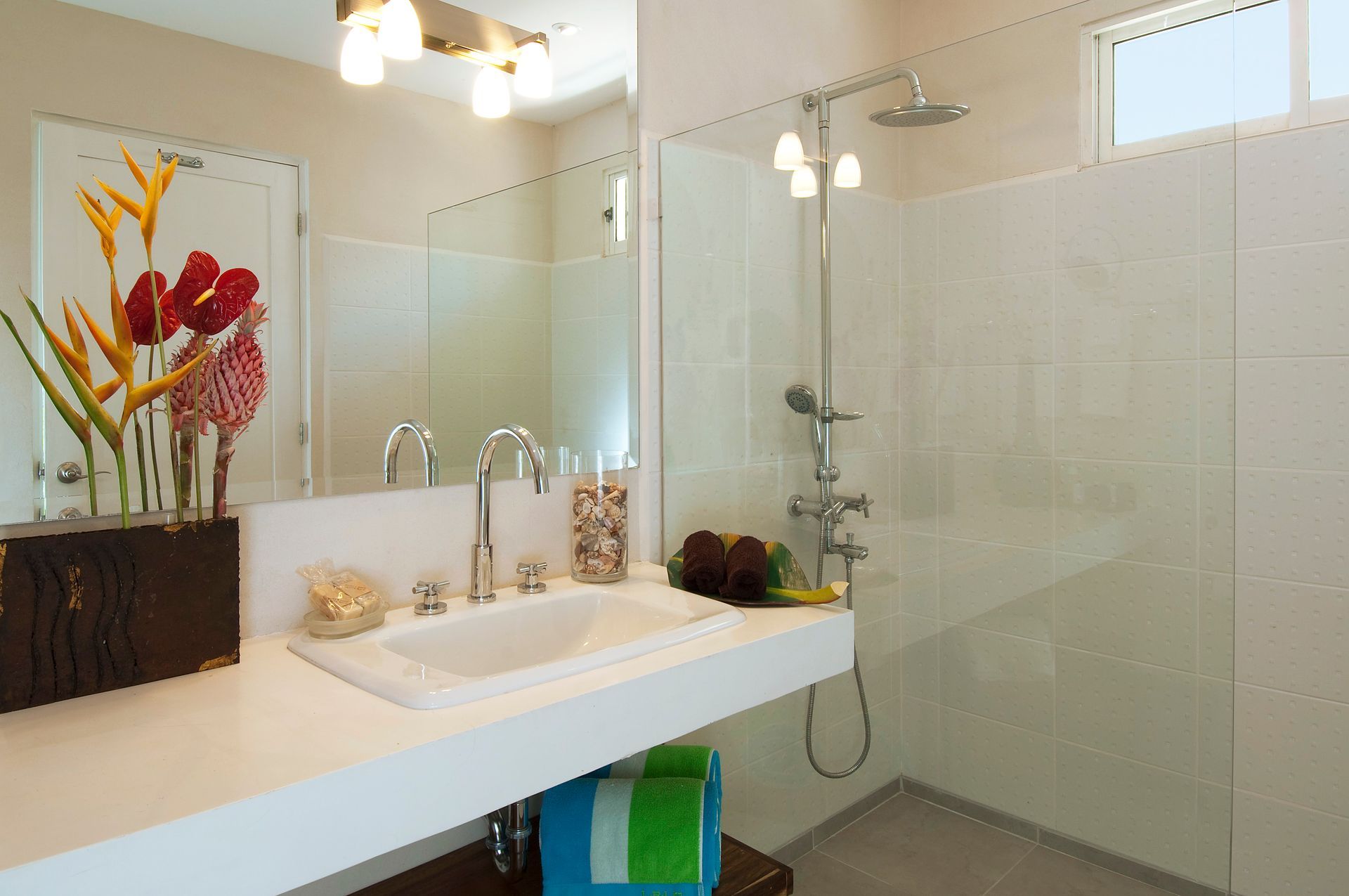 Beautiful garden-side villa. King bed in large bedroom, queen bed in mezzanine. Villa has two bathrooms, shower in each.